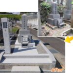 ご納得いただいて工事に入り、しっかりとした基礎工事、耐震ボンドやステンレス製のL字金具等を使用して、万一の地震にも安心の工事を行いました。そして完成したお墓がこちらです。