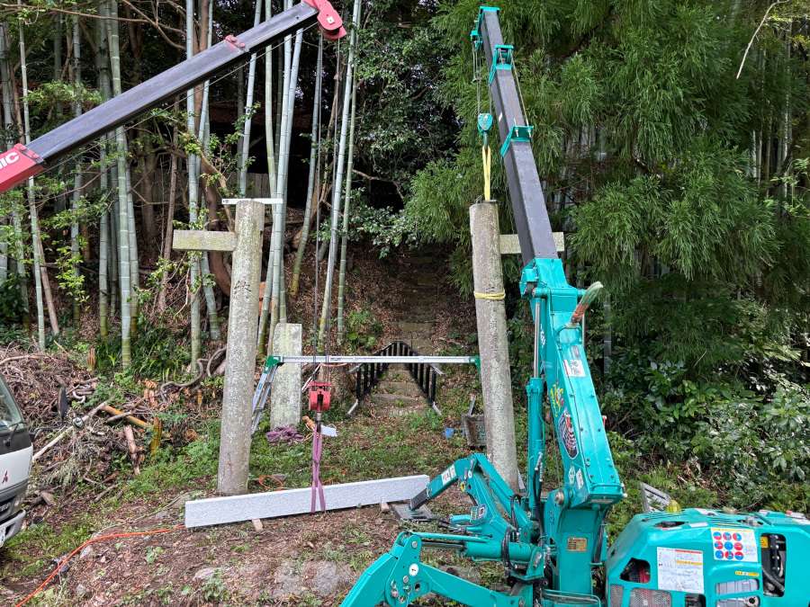 湯梨浜町にて、壊れてしまった鳥居の修復工事を行いました