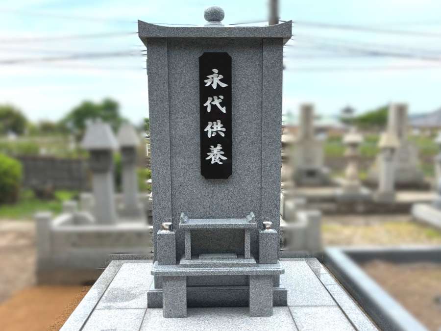 三朝町のお寺様で、和洋型の永代供養塔を建立しました。外見は一般的なお墓ですが、広い納骨室を確保しています。